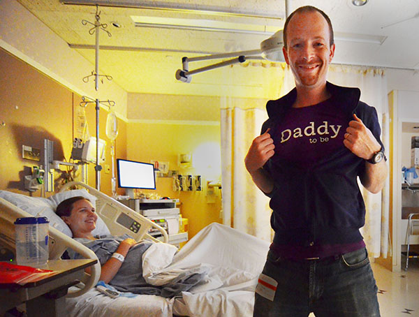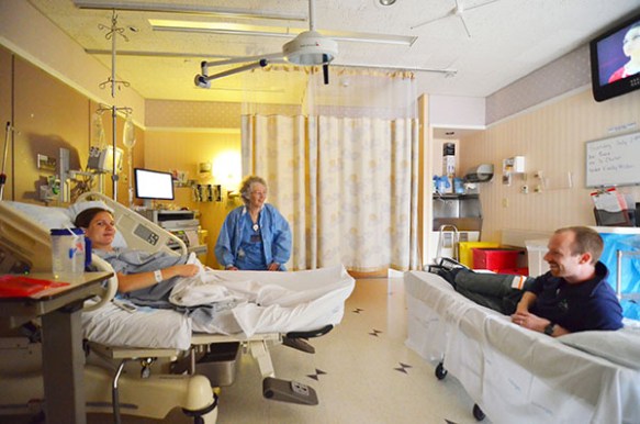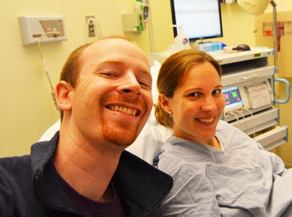 Tommy and Tracy in the triage room between contractions. You can see the EMG behind Tracy.