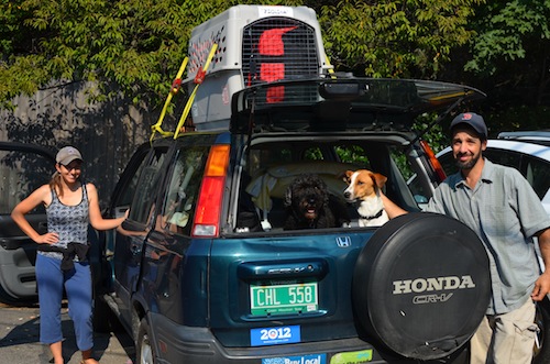 Laura and Dylan came to visit on their way back from Maine. We spent a couple of days in Boston and then headed up to Vermont to show Kaya a good time. The ride up was a bit crowded but we got there eventually! The dogs rode in the trunk and the suitcases rode on the roof. We thought about letting the dogs ride on the roof but we heard recently that that is typically frowned upon.