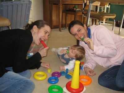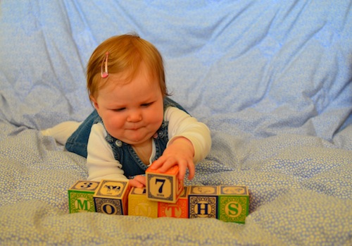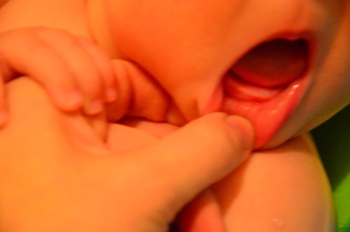 Kaya cut her first tooth about a week ago. Bottom left middle tooth. And it is REALLY hard to get a picture of it. This is the best I can do. It’s there – I swear.