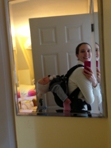 2. Strollers don’t work so well in the woods, or cities with sidewalks destroyed by winter, or with dogs. Strollers are for suburbs. Backpack = awesome, but I think I need to readjust it so she falls asleep more supported.