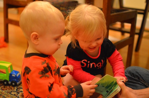 They are old enough now that they actually interact a little and it’s pretty cute. Not quite sharing, but playing together for sure.