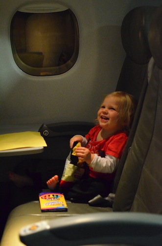 I carried an entire extra bag of toys on the plane to Boston for Kaya’s entertainment. Each toy lasted about 5 minutes, and we brought 15 toys for the 2 hour plane ride which took up 75 minutes. Repeat toys last 1 minute each plus the airplane snacks and a diaper change rounded out the schedule. Kaya did great, but I was exhausted. Thank god for pop chips!