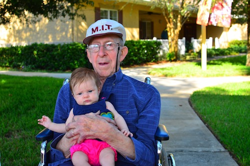 He was much loved and we are very sad to lose the Kircher family patriarch. Kaya got to meet him as a baby (I hardly recognize her in this picture though) – she brought him an MIT hat to win his heart forever. He will be missed.