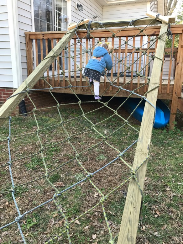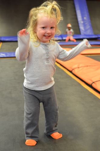 Today marked the first time I tried to take the 3 kids out without Tommy, although it hardly counts since Grandma Baba helped out for most of the day. We went to Touch a Truck at Southpoint – the girls were not so interested in any of the trucks (Kaya sat in the trash truck and we all got in the Durham public bus…and that was about it). Kaya did really enjoy watching the helicopter take off, the bounce house, begging for popsicles, and facepainting. Laney refused face painting and got about 1 foot into the bounce house before she freaked out, but I think she had a good time. Maggie slept despite the super loud truck horns. Then we had lunch at CPK, played in the mall play area, went out for frozen yogurt where we ran into a friend, and went to the Cedar Falls Playground. And I think that we may have made it through the day without all 3 kids crying at once – I’ll call it a win. Now it’s 8:03pm, all 3 girls are asleep, and I’m exhausted!