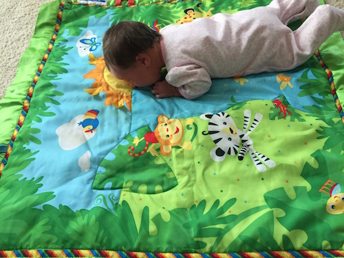 There is something so pitiful about watching a newborn do tummy time. Maggie actually tolerates it better than the other girls did, but still only lasts about 3 minutes before she starts to wail. I can give her a pacifier to, you know, pacify her, but then she falls asleep and that sorta defeats the purpose. She is gaining weight like a champ (over 8 lbs today!) but her neck muscles still have a long way to come.