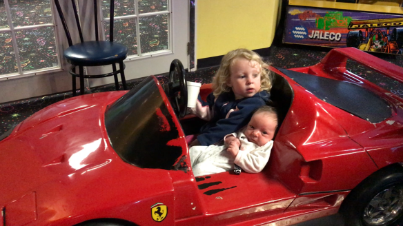 Just as Maggie hit her one month birthday a few weeks ago, she came down with her first cold. She was quite stuffed up and incredibly cranky – and I had two days to take a one month picture before we left for California. Unfortunately, she had no desire for a photoshoot and despite two straight days of trying, she refused to look even reasonably content for a picture. So, I present to you – her one month picture. Luckily I have screaming pictures of Kaya and Laney at one month as well, so it won’t mess up my ultimate 3 x 12 picture framing plan. She is feeling better now!