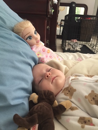 Today, I was so tired that I fell asleep next to Orly when she was napping. And woke up to this! Not creepy at all. Maggie finally admitted that she thought Elsa needed a nap too.